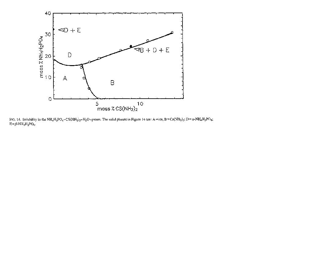 7.2. NH4H2PO4-Organic Compound-H2O The NH4H2PO4-CS(NH2)2-H2O system is described in two articles.1,2 The 298 K isotherm and the complete phase diagram are given for the system. All these data are consistent with each other, but no critical evaluation can be made because there are no other data available for this system.