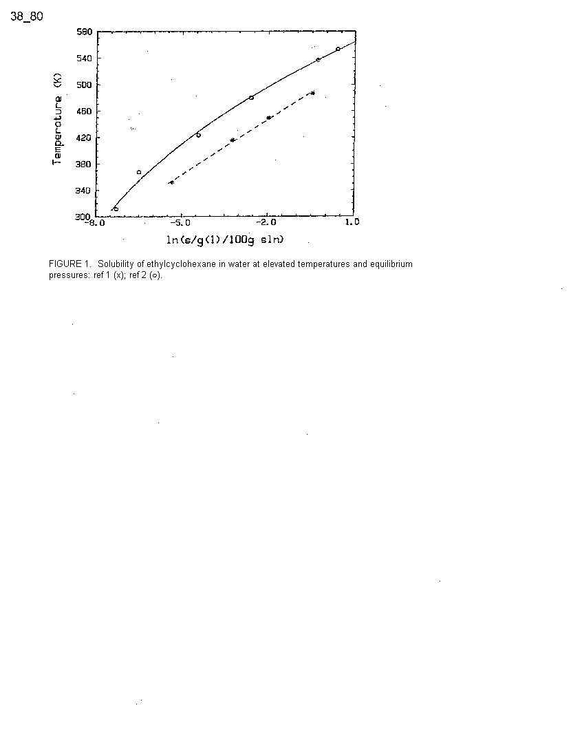 Table 2. Tentative Solubility Values ofr Ethylcyclohexane (1) in Water (2) at the Three-Phase Equilibrium Pressure