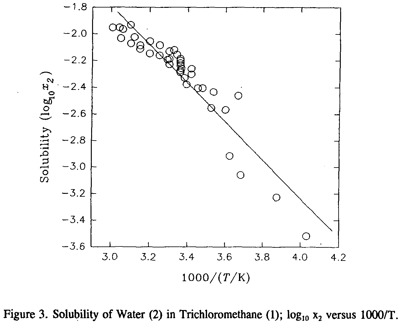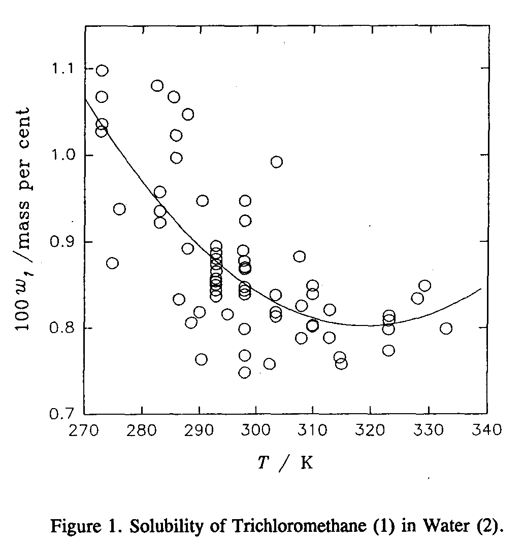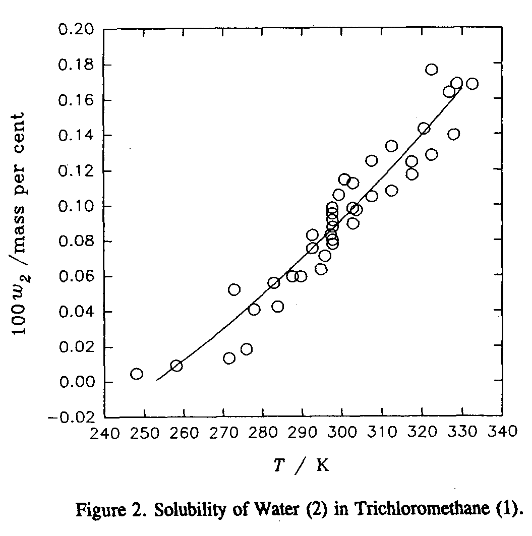 2. The solubility of water (2) in trichloromomethane (1) has been studied by