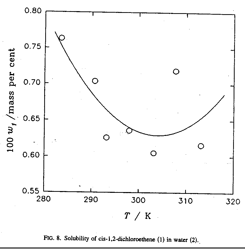less, and may be considered tentative for solubility of cis-1,2-dichloroethene